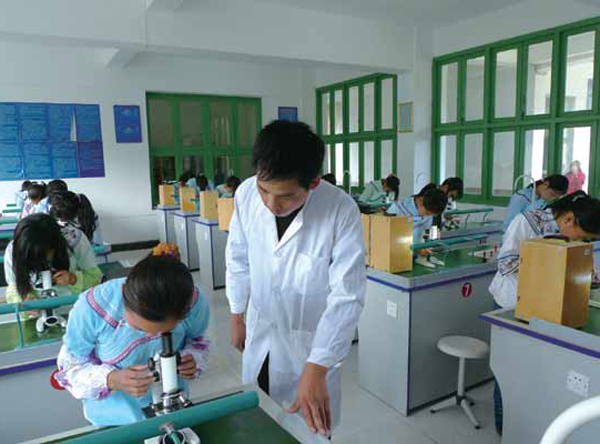 學生興致勃勃的觀看切片